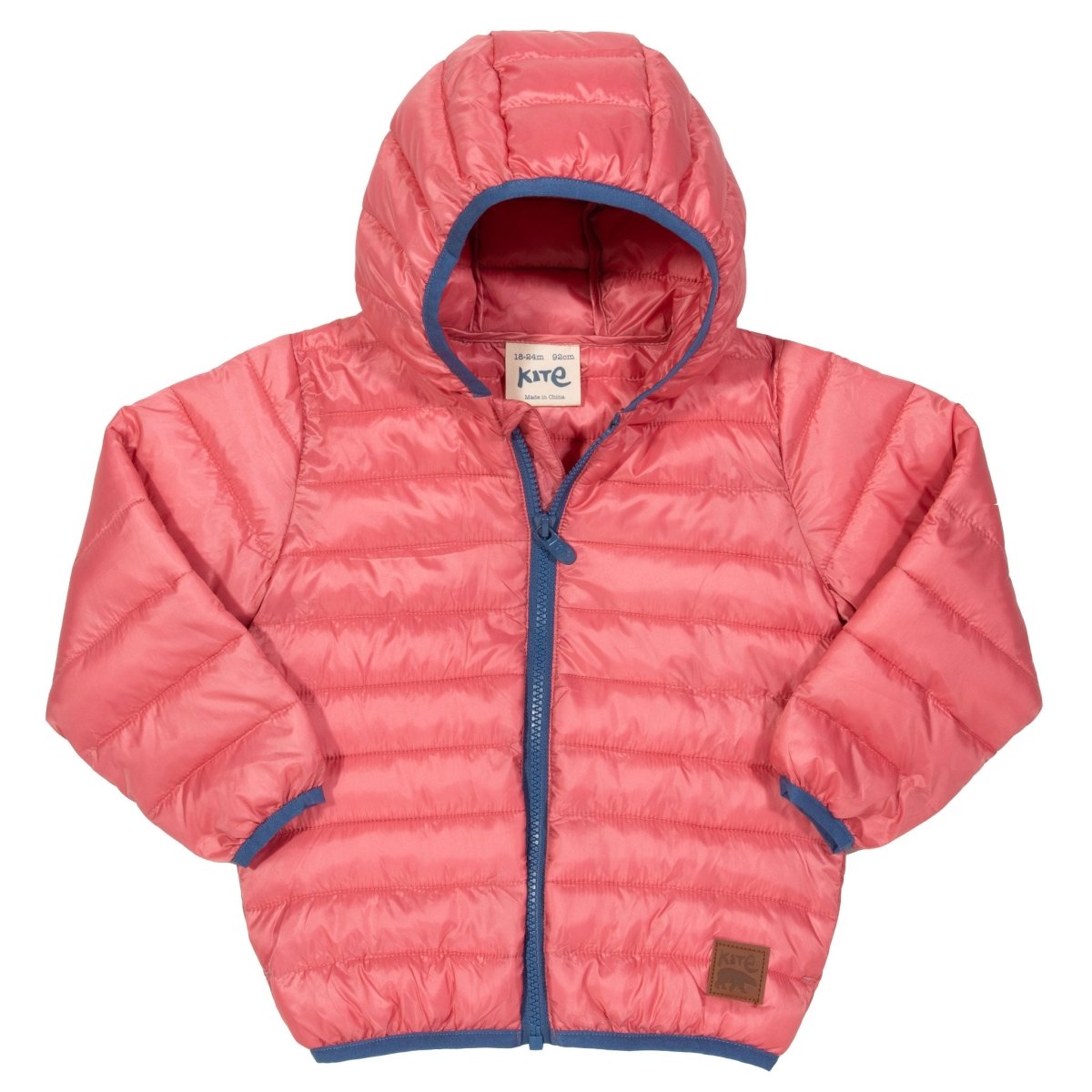 This versatile rose pink cocoon coat is a little star! Made with 'feather touch' recycled wadding it's lightweight enough to be packed in the bottom of a rucksack, yet warm enough to make frosty mornings fun to play in.