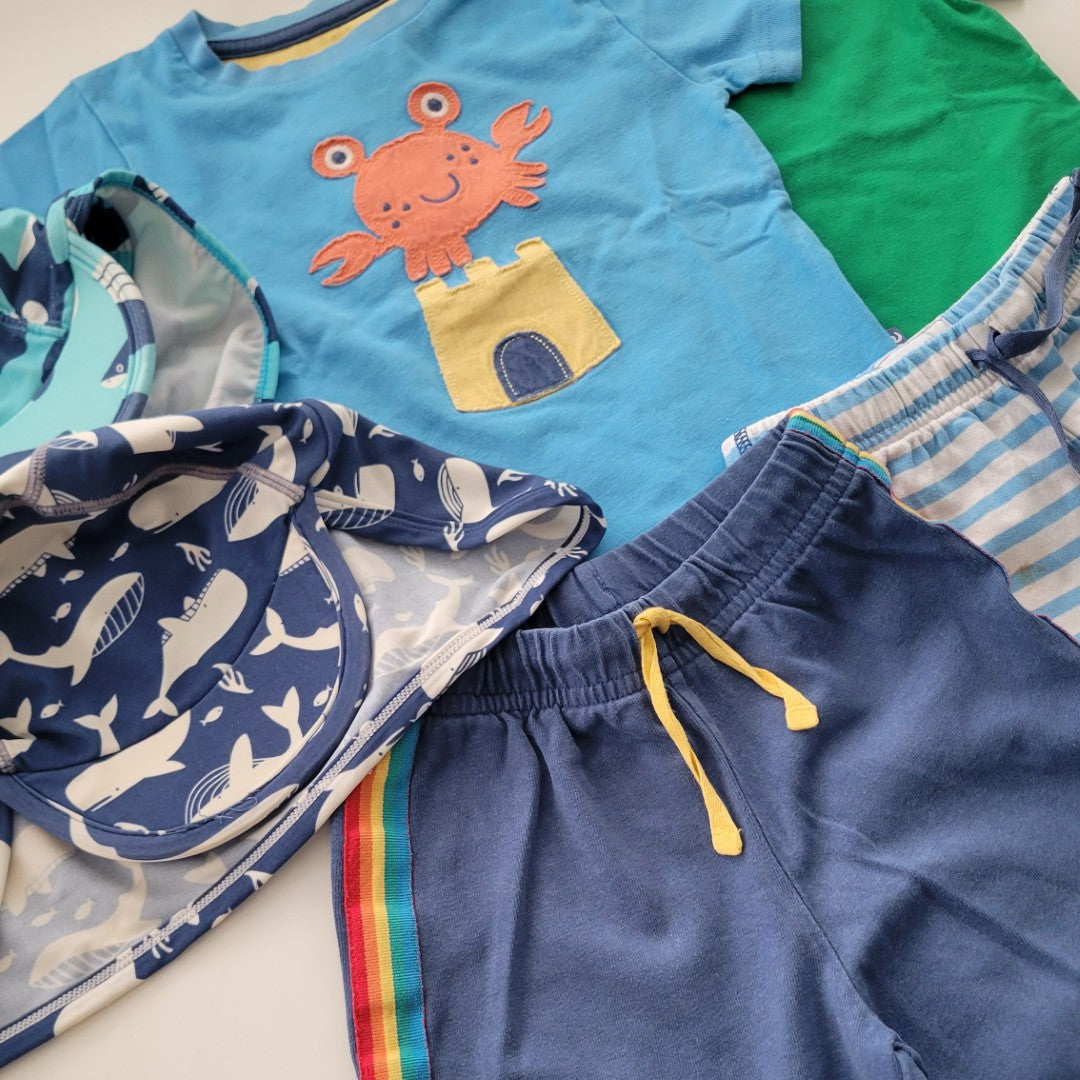 6 items - 4 in good condition, 2 in fair condition (see pics) - all from our ex-rental stock. All organic cotton and sustainable fabrics. Bundle includes items from Kite and biau-baiu.