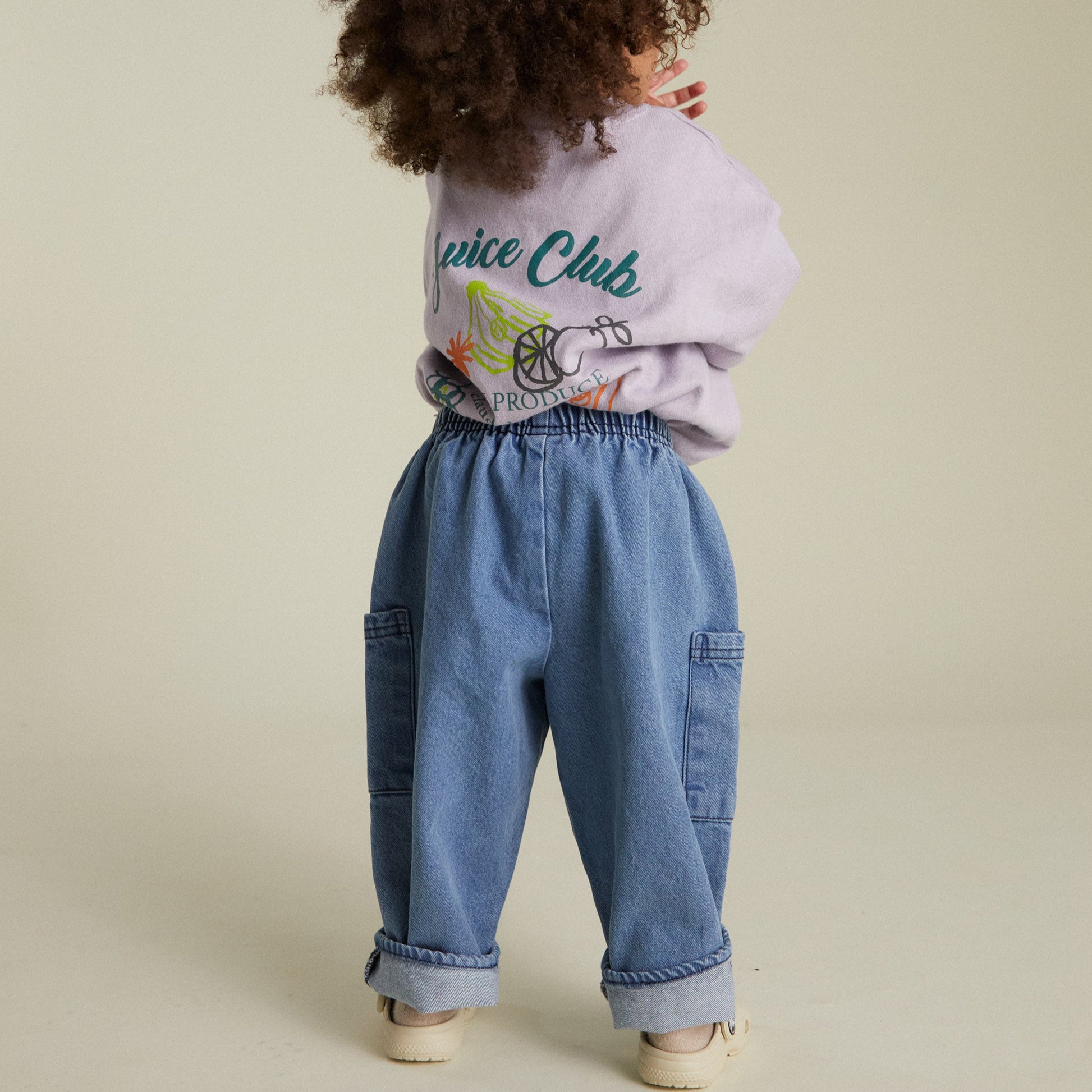 Intentionally designed to go with just about everything, these unisex children’s bottoms are made using 100% soft organic cotton denim with playfully oversized pocket details and an elasticated waistband for added support.