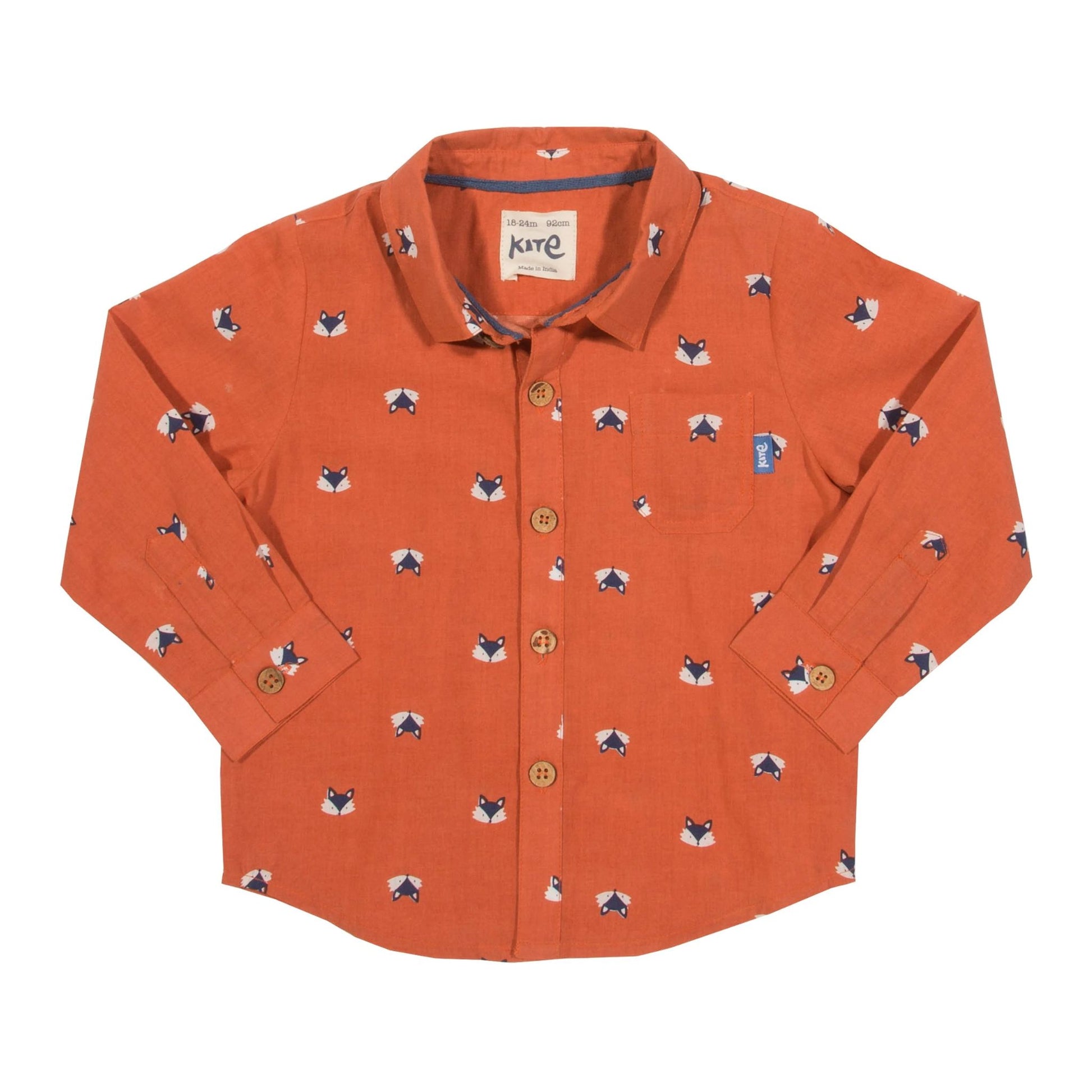 A colourful shirt that adds a bright splash of russet to any outfit. Featuring a super cute foxy face print this contemporary number is great for special occasions.