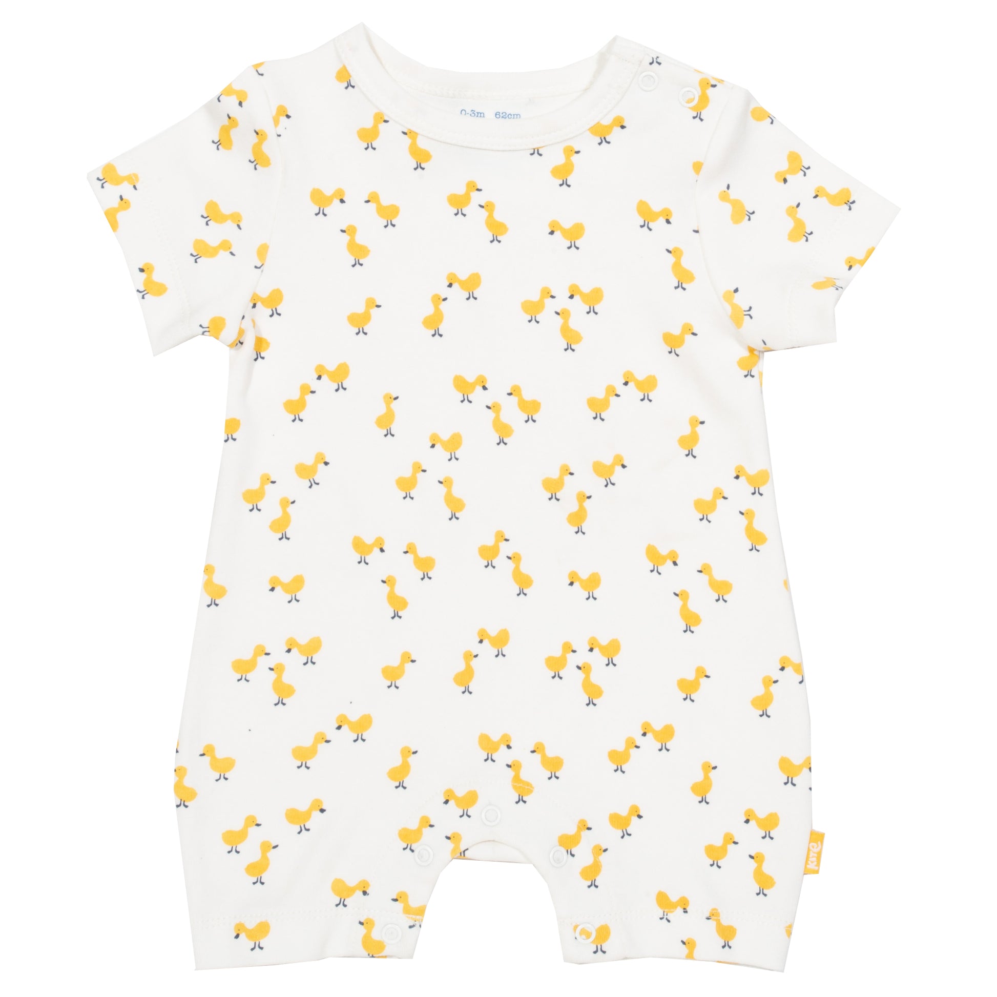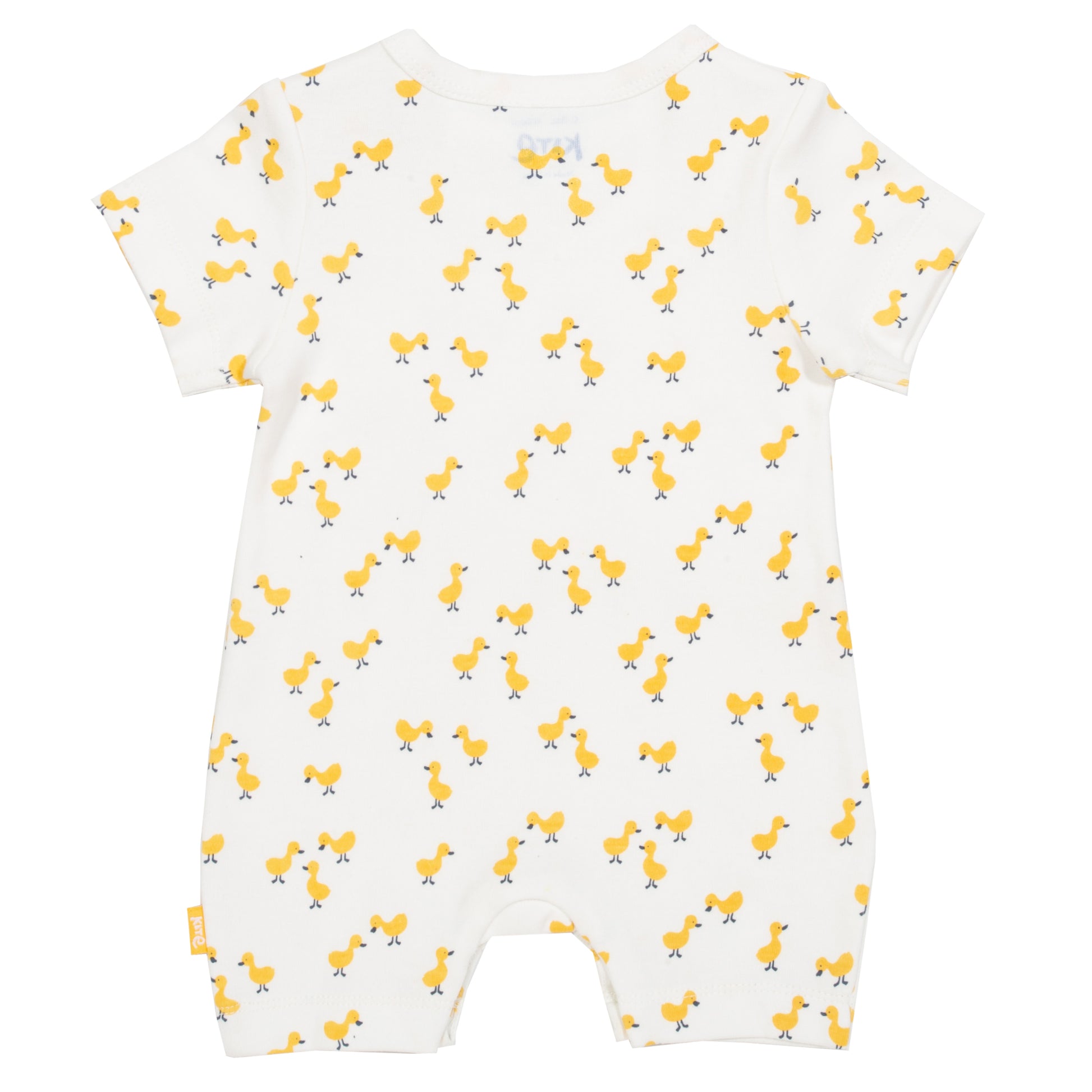 Whether playing, sleeping or chilling your little one will love being dressed in this 100% GOTS organic cotton romper. It features a waddling of little yellow ducks on a white background. Combining a popper crotch and shoulder opening, changing is simple.