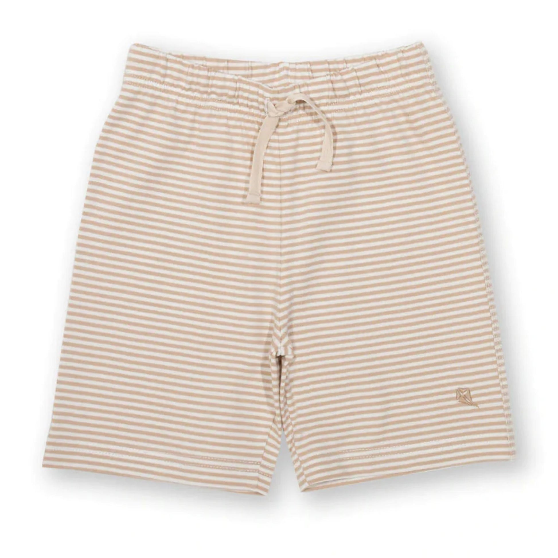 Stripy, seasonal and stylish! These cool mini Corfe shorts, with a mushroom and cream yarn dyed stripe, are made from super-soft, single jersey fabric. With useful features such as an elasticated waistband and adjustable ties, they can be worn comfortably all day long.