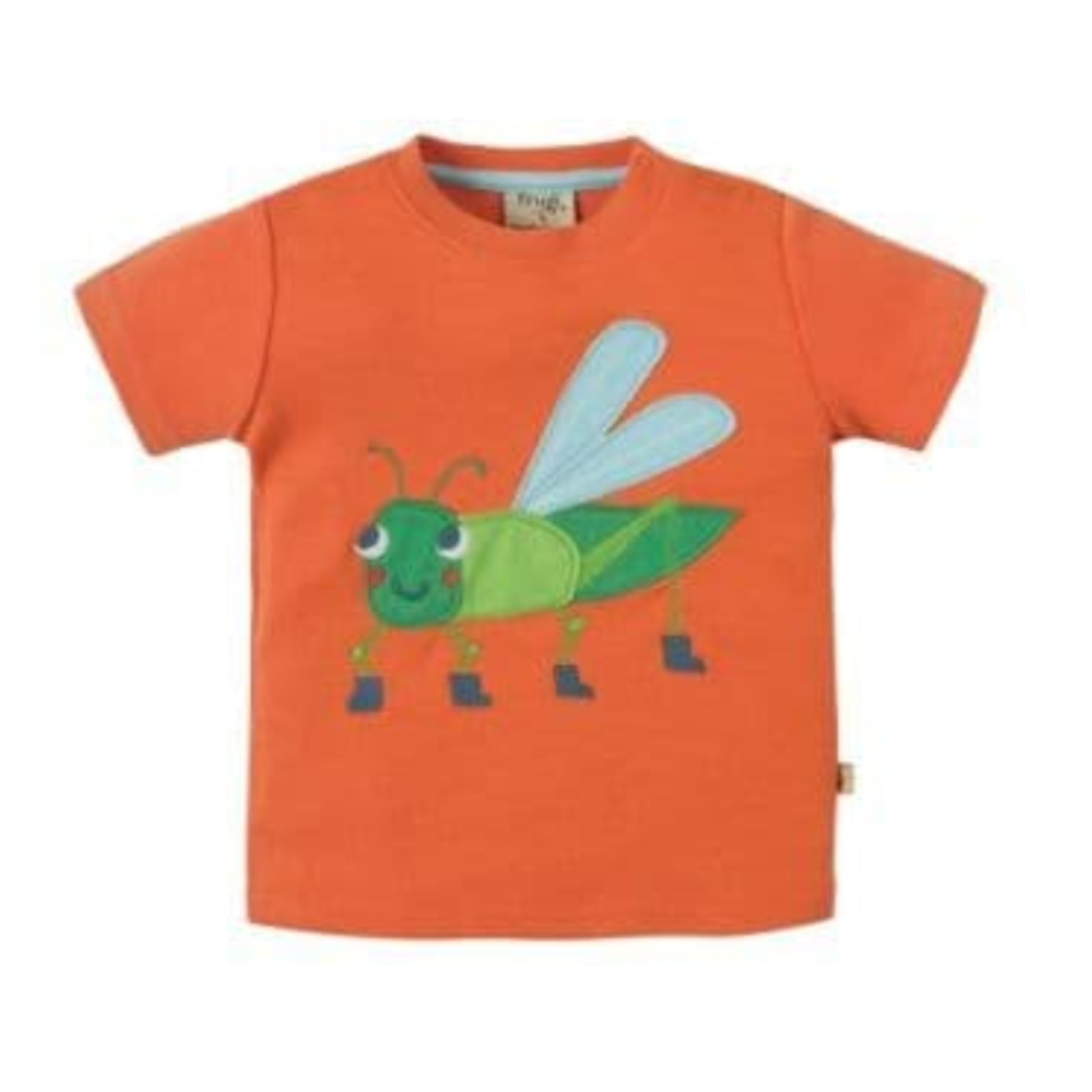 This T-Shirt features a fun applique grasshopper on the front and is crafted from super-soft and breathable organic cotton. Plus, this GOTS certified t-shirt has an added a touch of stretchy elastane to the ribbed neckband or extra comfort, and sizes up to 4 years have poppers on the shoulder for easy-peasy dressing.