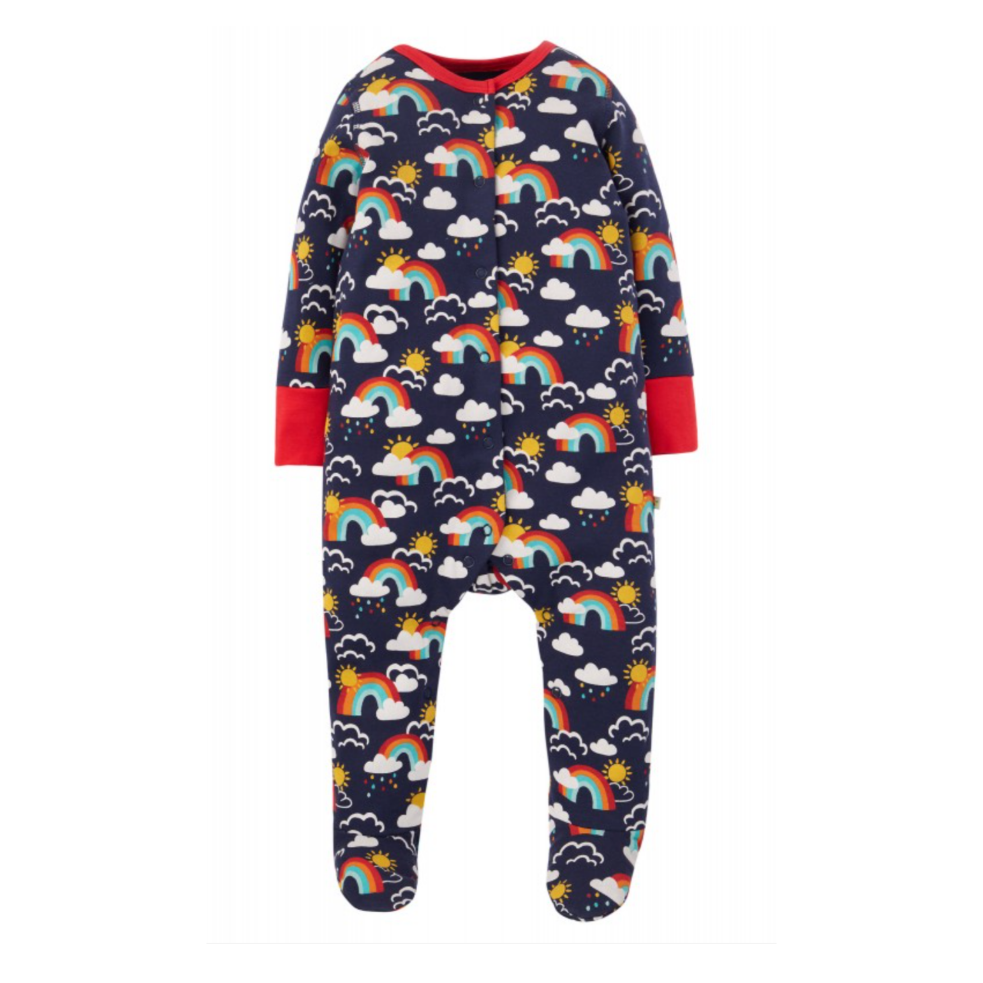 Babygrow with cosy feet and integral fold-back scratch mitts (up to 12M). Centre front popper fastening.