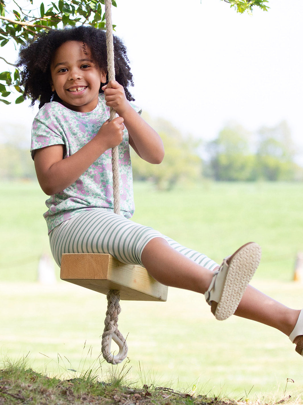These great little leggings in a sage green and cream yarn dyed stripe are a fab little wardrobe staple for the season. In a flattering over-the-knee fit, they are designed to last and go perfectly with so many of Kite's tops this season. Made from hard-wearing organic cotton jersey with a little bit of stretch for extra comfort and a fabulous fit.