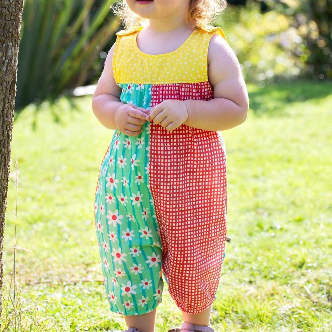An instant ready-for-playtime outfit! These Summer Printed Dungarees have super-stretchy elasticated leg cuffs for a comfy fit. Plus, the popper fastenings at the shoulders and the waist help make dressing your wriggly little one in the morning a breeze! These GOTS certified dungarees are crafted from soft and breathable organic cotton, ready for adventure after adventure.