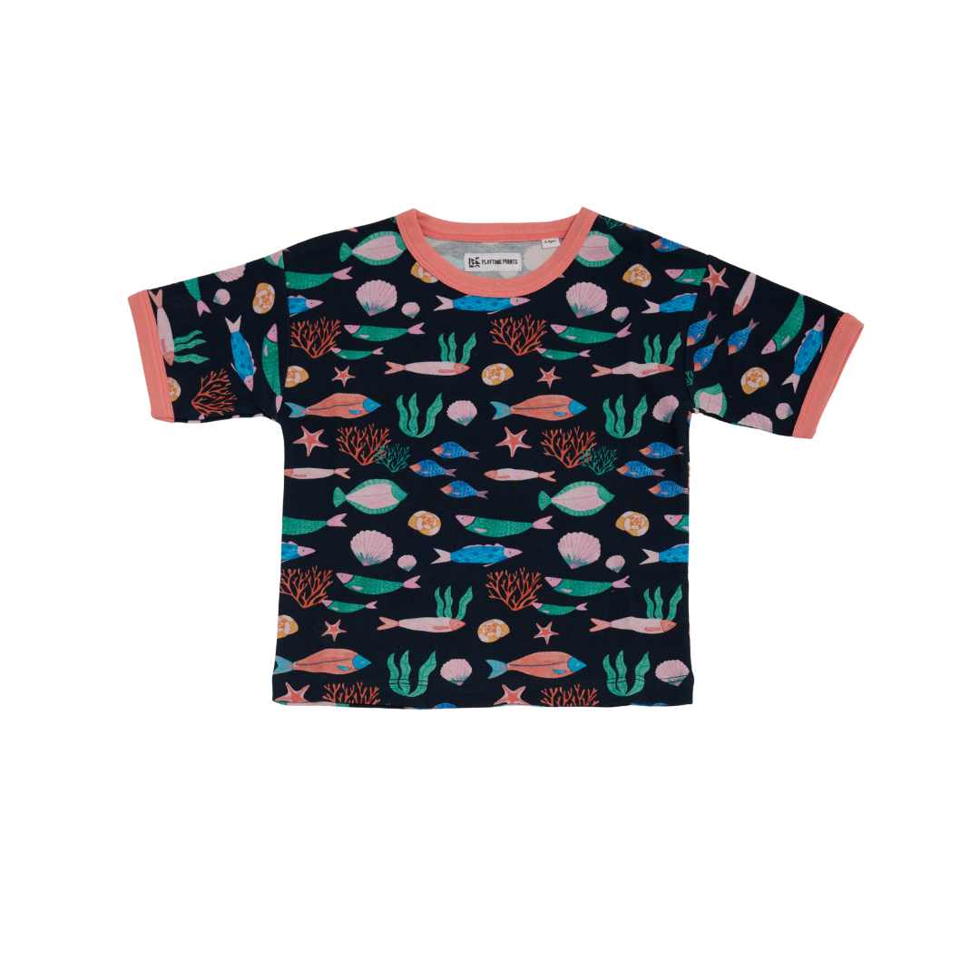 Featuring the vibrant Playtime Prints’ under the sea print and a tropical contrast coral trim, this tee is sure to make waves. Made with 100% organic cotton for maximum comfort.