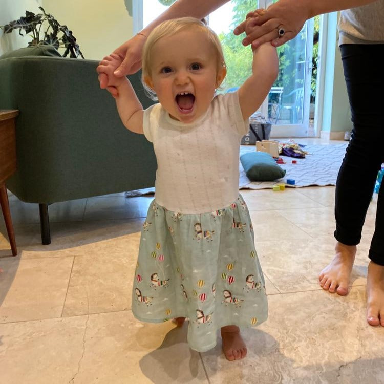 Time to twirl and run, jump and spin! The Little Twirler dress is a comfy style for everyday wear or special occasions. It comes with a super soft pointelle fabric at the top, capped sleeves to protect for the sun, ties to make a bow at the back or front and a wide skirt, perfect for twirls. Pair with our spring jacket for a matching set.