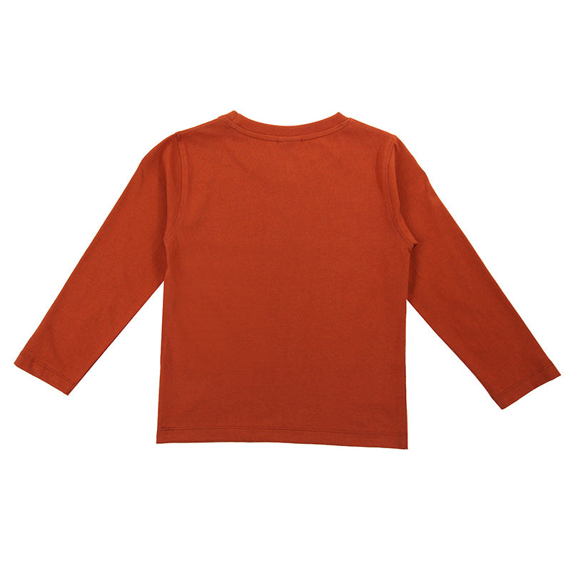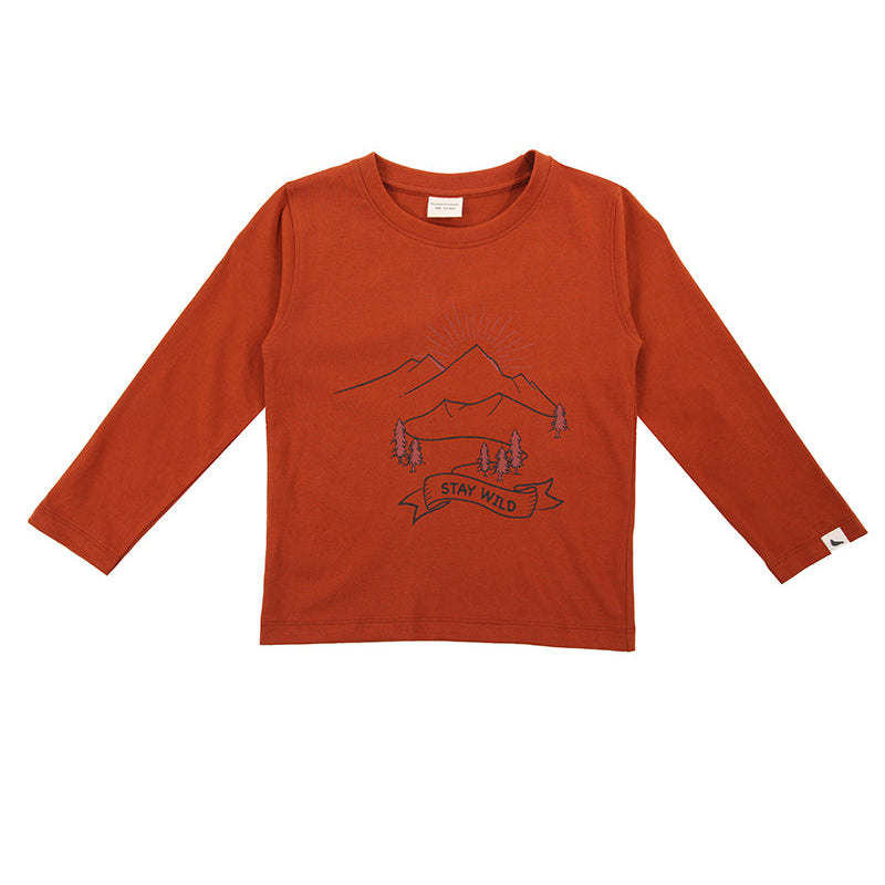 In an Amber base, this jersey long-sleeve kids top features our Wild Mountains Motif. Made from our super-soft organic cotton jersey fabric, this sustainable kids top is perfect for those colder days - playing outdoors or snuggling on the sofa. Printed using azo-free dyestuffs, this gender-neutral top is kind to your child's skin and eco-friendly to our environment too.
